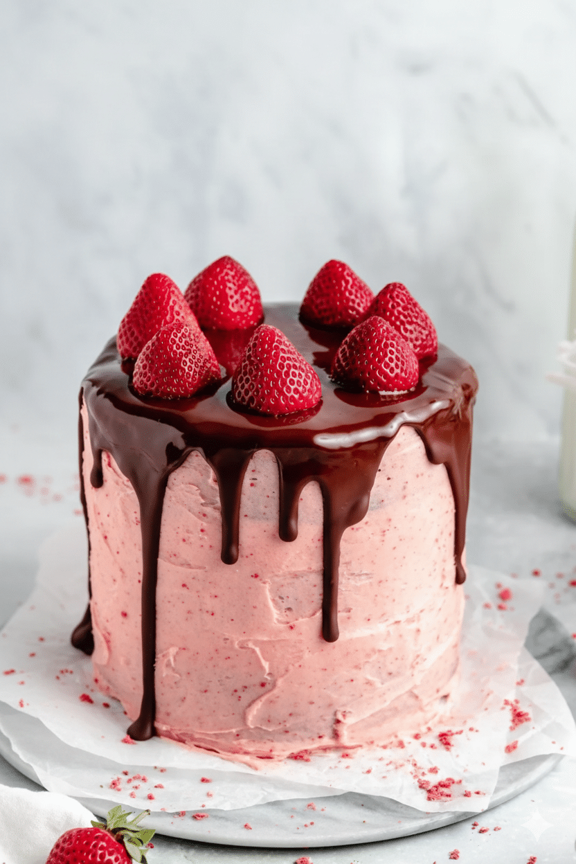 Decadent, moist, and utterly irresistible! Layers of rich chocolate cake meet fresh, sweet strawberries and creamy frosting. This Strawberry Chocolate Cake is perfect for birthdays, recipe card