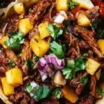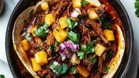 - Spoon the shredded beef onto the tortillas and top with chopped cilantro and lime juice.