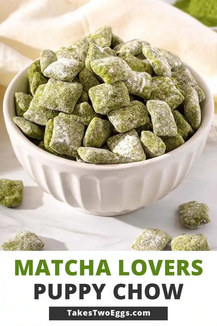 You can serve Matcha Puppy Chow in bowls or small bags for a fun snack. It’s great for parties, movie nights, or just a sweet treat after school. You can also sprinkle some extra matcha on top for added flavor and color.