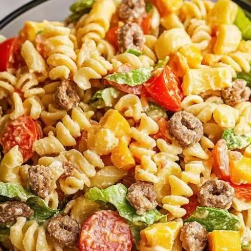 You can easily customize Big Mac Pasta Salad by adding other ingredients like chopped tomatoes, shredded carrots, or even turkey instead of ground beef. You can also try adding a dash of hot sauce if you like some heat.