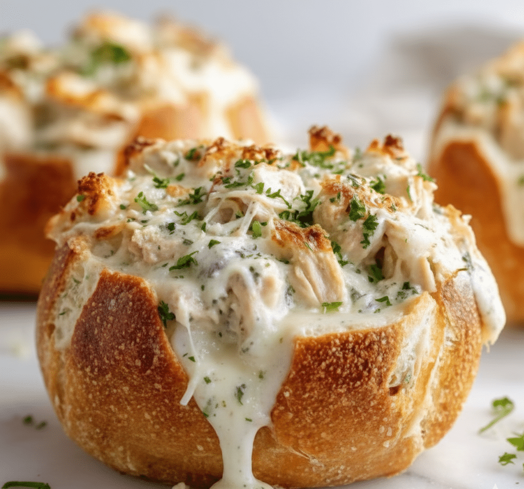 Chicken Alfredo Garlic Bread Bowls are a delicious and fun twist on a classic Italian dish. They bring comfort food to a whole new level by serving creamy chicken Alfredo inside warm, crispy bread bowls. This recipe is perfect for gatherings, movie nights, or a cozy dinner. Plus, it combines savory chicken and pasta with the irresistible crunch of garlic bread, making each bite a treat!