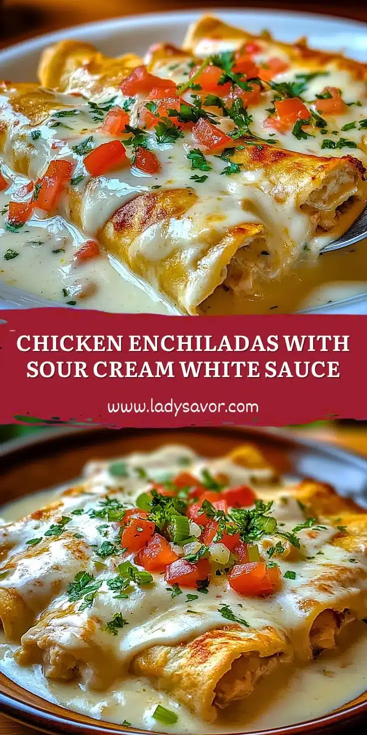 Chicken Enchiladas with Sour Cream White Sauce are a fantastic dish that combines comfort and flavor. They are easy to make and perfect for a family dinner or a gathering with friends. The creamy sauce and tender chicken wrapped in tortillas create a delicious meal that everyone will love. Plus, this recipe can be customized with your favorite toppings or ingredients, making it a versatile option for any cook.