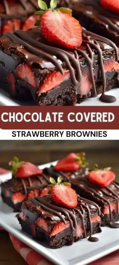 Chocolate Covered Strawberry Brownies combine rich chocolate brownies with fresh strawberries and a velvety chocolate ganache for an irresistible dessert.
