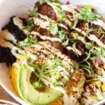 • Top each bowl with a drizzle of the creamy sauce, avocado slices, and chopped cilantro.