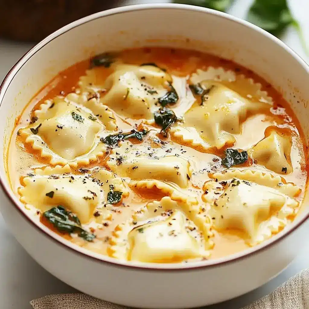 You can serve Creamy Ravioli Soup in bowls, garnished with fresh basil leaves. It pairs well with crusty bread or a side salad for a complete meal. This soup is warm and rich, making it the perfect dish for family dinners or cozy gatherings.