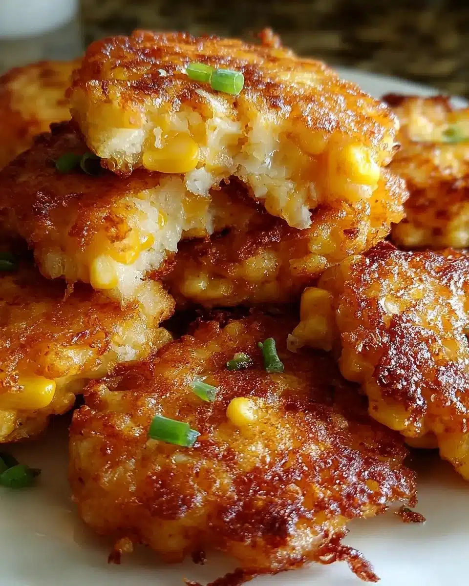Delightful crispy fritters that combine creamy mashed potatoes, sweet corn, and sharp cheddar cheese, making a perfect snack or side dish.