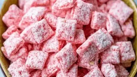 Delicious Strawberry Shortcake Puppy Chow is a fun and tasty snack that everyone will love. The sweet and crunchy mix combines the flavors of strawberries and cookies, making it perfect for parties, movie nights, or just a cozy afternoon treat. It’s also easy to make, and you can enjoy it anytime you want a sweet snack!