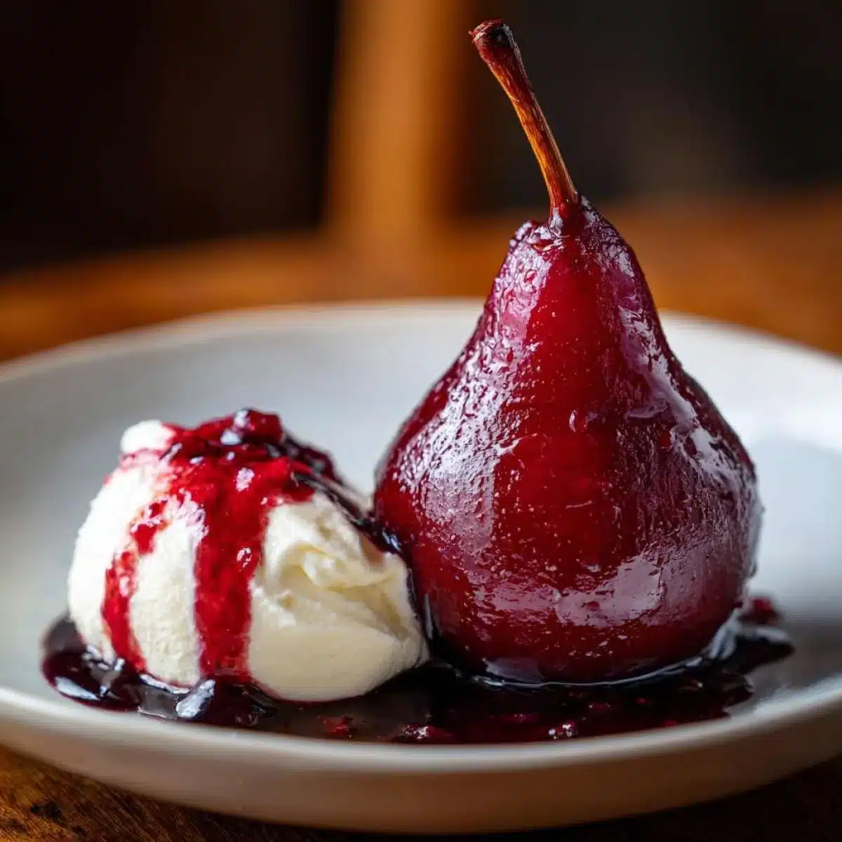Elegant Spiced Red Wine Poached Pears with Mascarpone Cream