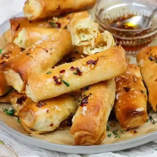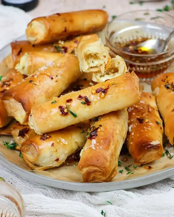 Flaky Chili Honey Feta Rolls are a delightful appetizer that brings flavors together in a simple and appealing way. They are perfect for gatherings, parties, or just a special snack at home. With a crispy puff pastry shell and a sweet and spicy feta filling, these rolls are sure to impress your guests and keep them coming back for more.