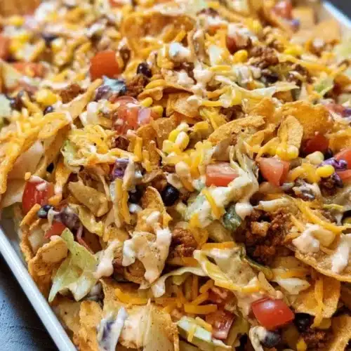 If you have leftovers, store them in an airtight container in the fridge. It can last for 3 to 4 days. To keep the Fritos crunchy, store them separately and add them just before serving.