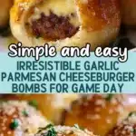 Garlic Parmesan Cheeseburger Bombs are a fun and tasty meal perfect for any occasion. They combine the savory flavors of beef, cheese, and garlic all wrapped up in warm, soft biscuit dough. Whether you’re hosting a game day party, a casual dinner, or just want a delicious snack, these cheesy bites are sure to impress family and friends. They are easy to make and even easier to enjoy!