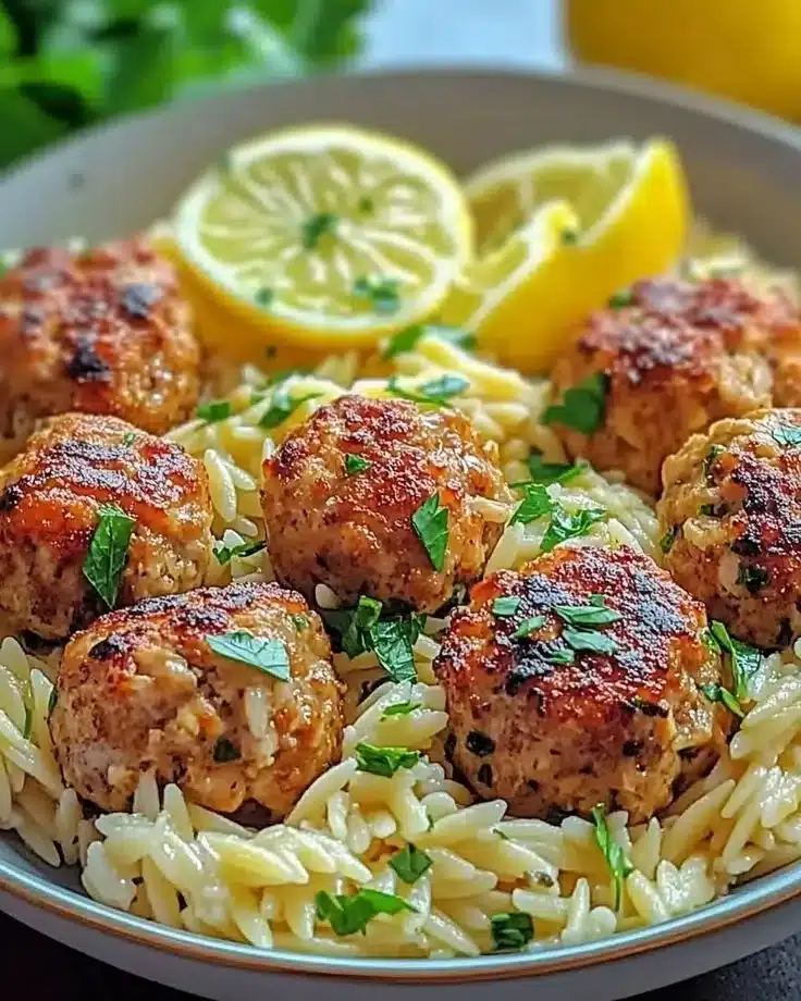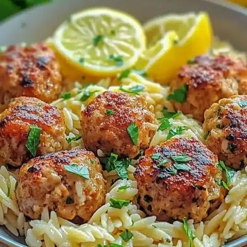 Greek Chicken Meatballs with Lemon Orzo is a delightful dish that brings together fresh flavors and comforting elements. With tender chicken meatballs flavored with herbs and lemon, served on a bed of zesty orzo, this meal is satisfying and perfect for any occasion. It’s also a quick and easy dish to prepare, making it ideal for busy weeknights or casual gatherings. Plus, it’s a wonderful way to introduce Greek flavors into your cooking!