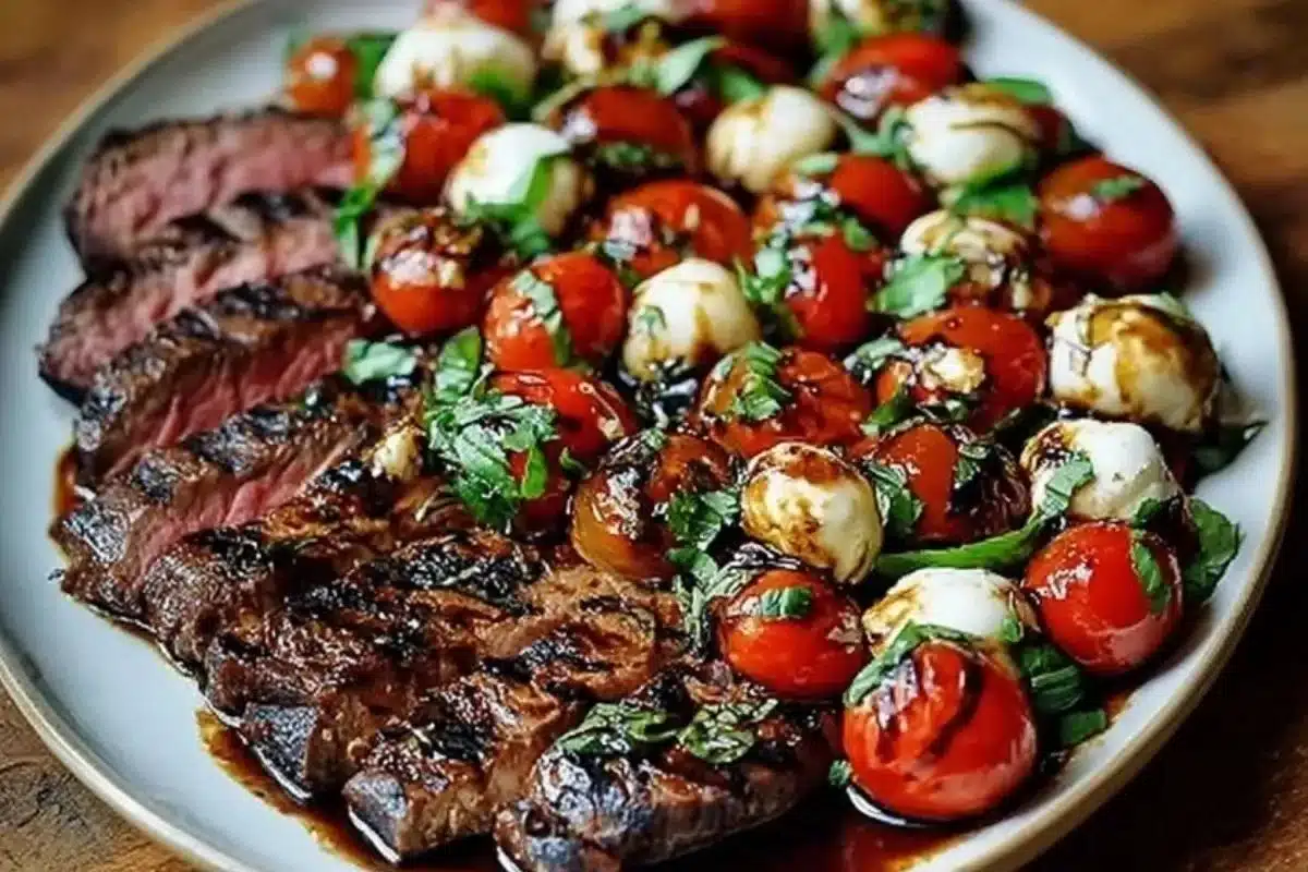 Grilled Flank Steak Caprese with Balsamic Dressing is a perfect dish for any summer barbecue or family dinner. It combines the bold flavors of marinated steak with the fresh tastes of tomatoes, mozzarella, and basil. This dish is not only delicious but also visually appealing. The combination of ingredients makes it a crowd-pleaser, and it’s simple to prepare. Plus, the balsamic dressing adds a tangy sweetness that ties everything together.