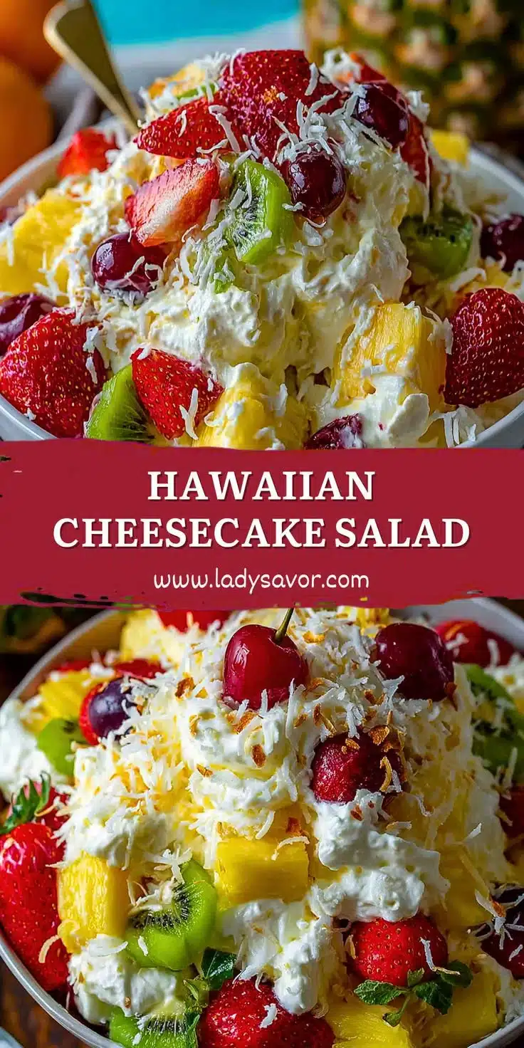 Hawaiian Cheesecake Salad is a delightful twist on traditional cheesecake. It combines the sweetness of fresh fruit with the creamy texture of cheesecake, making it a refreshing treat. This salad is perfect for summer gatherings, potlucks, and family get-togethers. It’s easy to make, visually appealing, and sure to impress anyone who tries it.