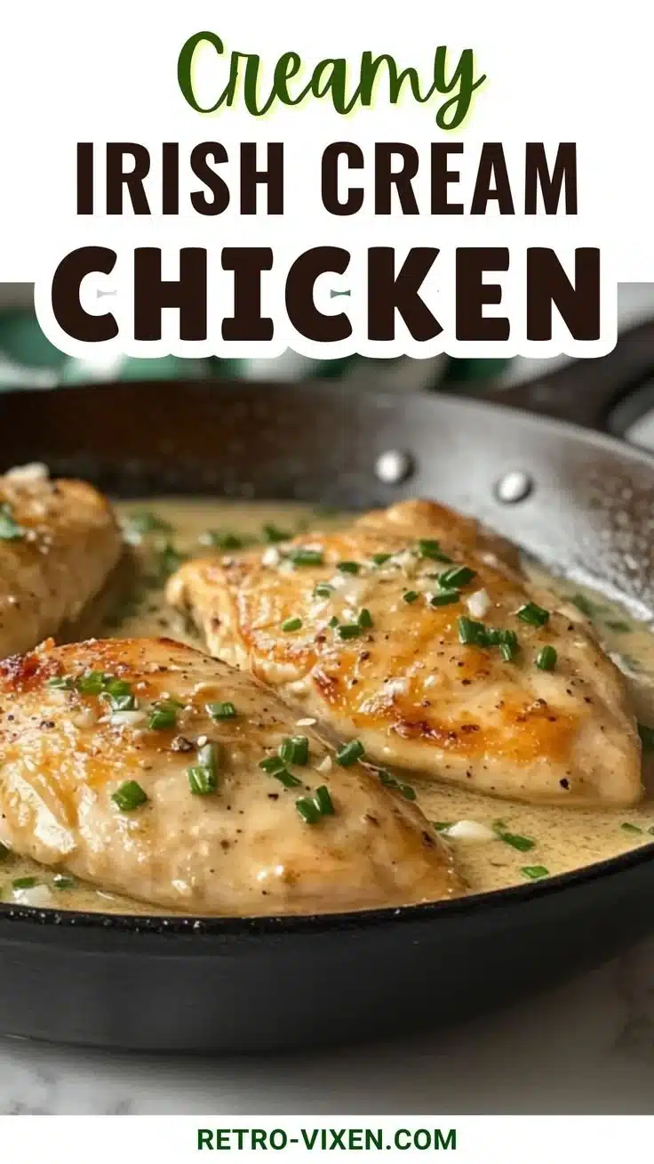 Serve Irish Cream Chicken warm. It pairs well with mashed potatoes, rice, or fresh bread to soak up the creamy sauce. You can also add a side of steamed vegetables or a simple salad for a complete meal. Garnishing with fresh herbs adds an attractive touch.