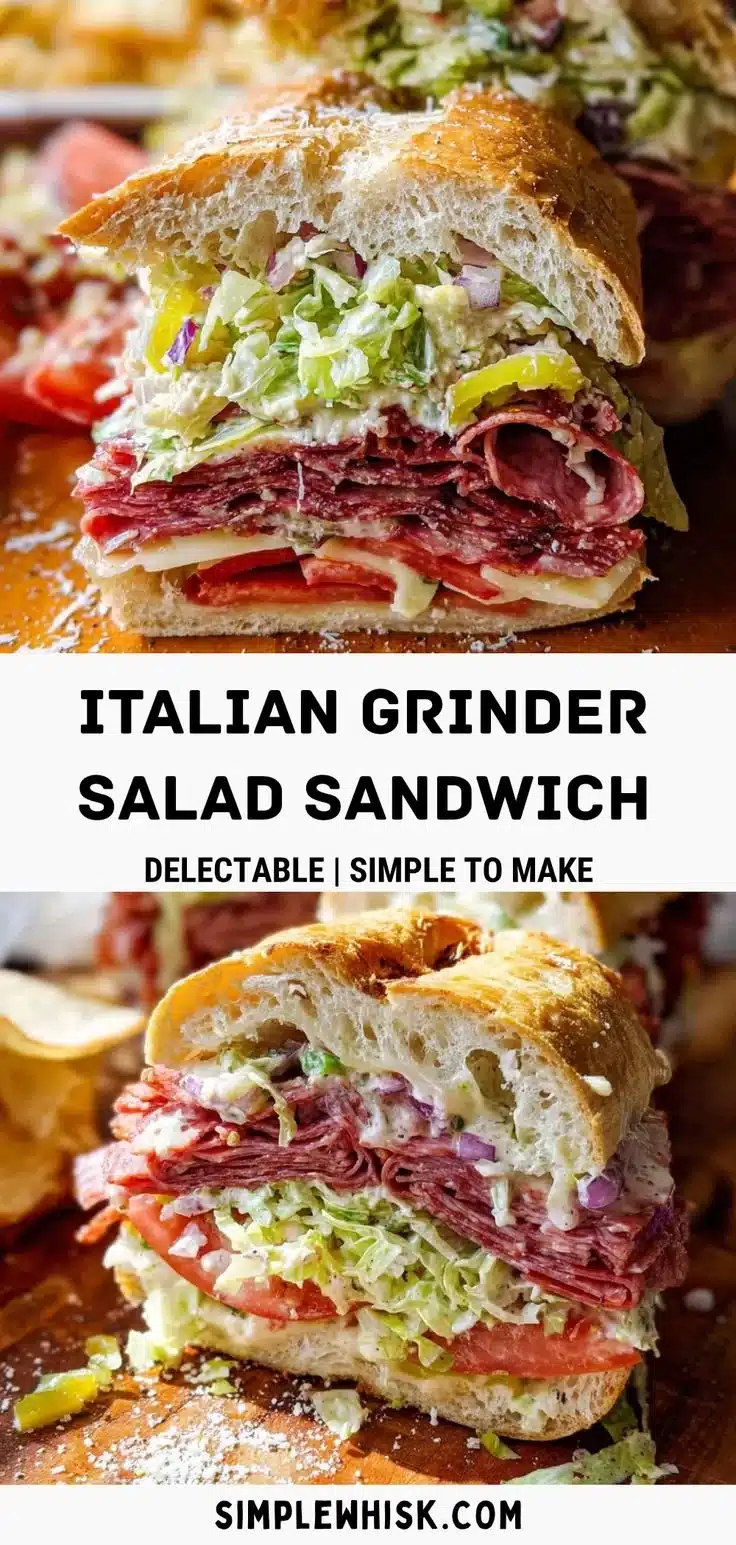 The Italian Grinder Salad Sandwich is a delightful mix of flavors and textures, making it a great choice for a quick meal or lunch. It’s simple to prepare and brings a taste of Italy to your home. Combining cured meats, fresh veggies, and a tangy dressing, this sandwich is not only satisfying but also refreshing. Plus, it’s perfect for enjoying on a picnic or a casual gathering with friends and family.