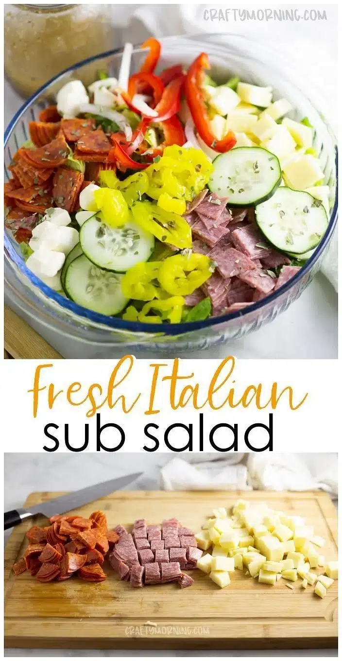 Serve the Italian Sub Salad as a main dish or a side. It pairs well with crusty bread or garlic bread for a complete meal. You can also add some extra cheese or more of your favorite Italian meats if you wish.