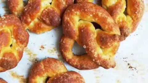 - Don’t skip the xanthan gum as it helps give the pretzels a chewy texture.