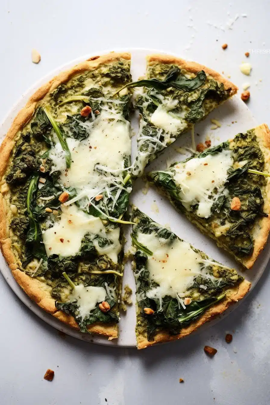 Keto Spinach Artichoke Pizza is best served hot. Slice it into wedges and enjoy it straight from the oven. You can serve it as a main dish or cut it into smaller pieces for a delicious appetizer. It pairs well with a side salad or some veggies for a low-carb meal.