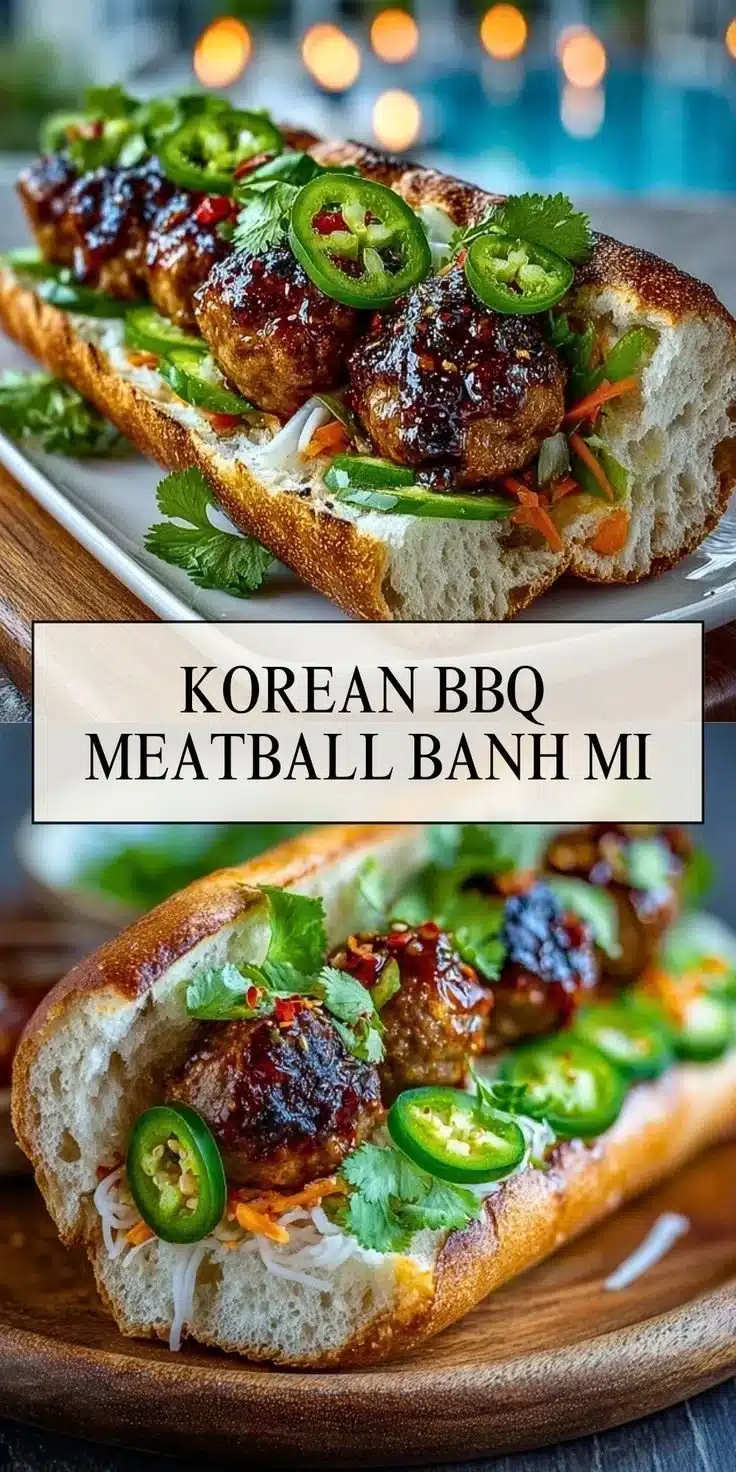 Korean BBQ Meatball Banh Mi is a fun twist on a classic Vietnamese sandwich. This recipe combines the savory flavors of Korean BBQ with the crunch of fresh vegetables and the warmth of a toasted baguette. It is an easy and delicious way to bring together different culinary traditions in one bite. Perfect for lunch, dinner, or a casual gathering, these meatball sandwiches are sure to please anyone who takes a bite.