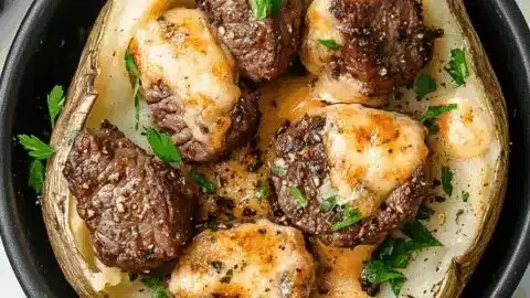 Loaded baked potatoes with steak bites are a delicious and comforting dish that brings together hearty ingredients in a satisfying way. The combination of crispy, salty potatoes with juicy steak and melted cheese makes it a favorite for many. Perfect for a weeknight meal or a special gathering, it’s an easy recipe that everyone will enjoy.