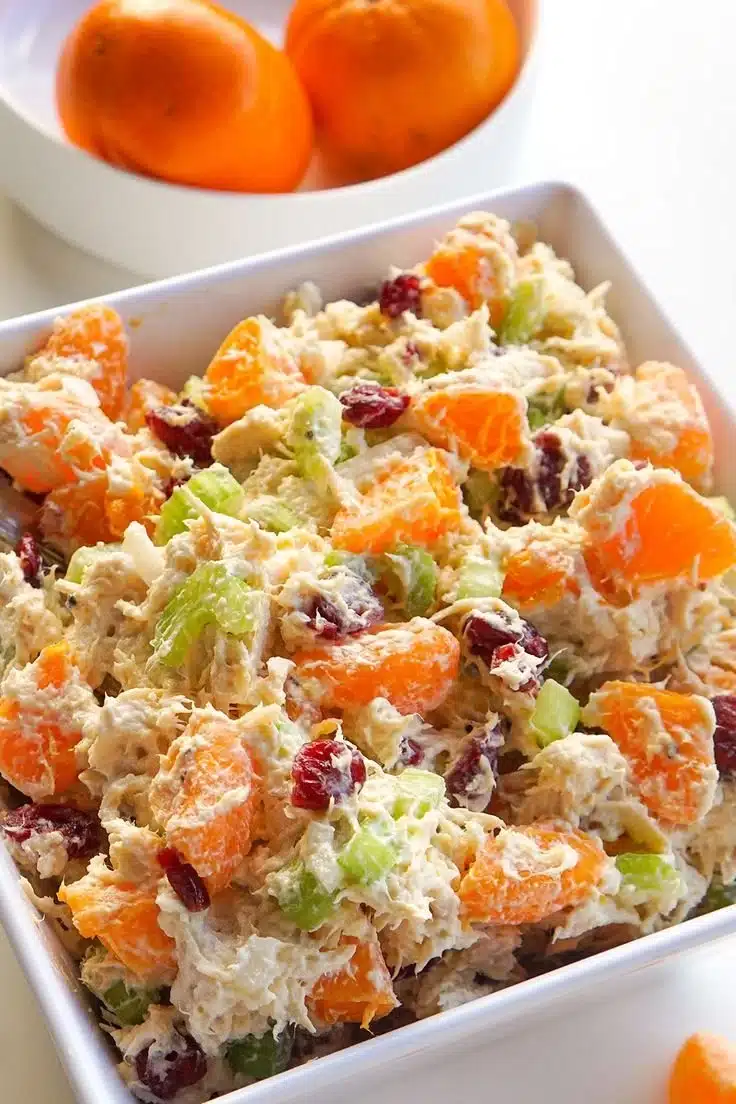 A delightful and easy salad featuring shredded chicken, sweet mandarin oranges, and a creamy dressing, perfect for lunch or a light dinner.