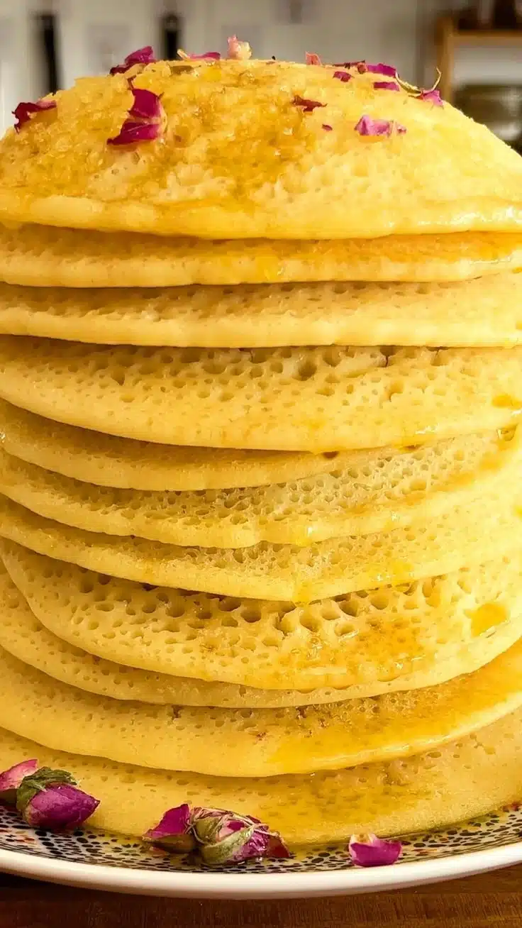 Serve Baghrir warm with a drizzle of honey or a pat of butter on top. You can also pair them with jams or fresh fruit for added flavor. They are perfect for breakfast, brunch, or even as a light dessert.