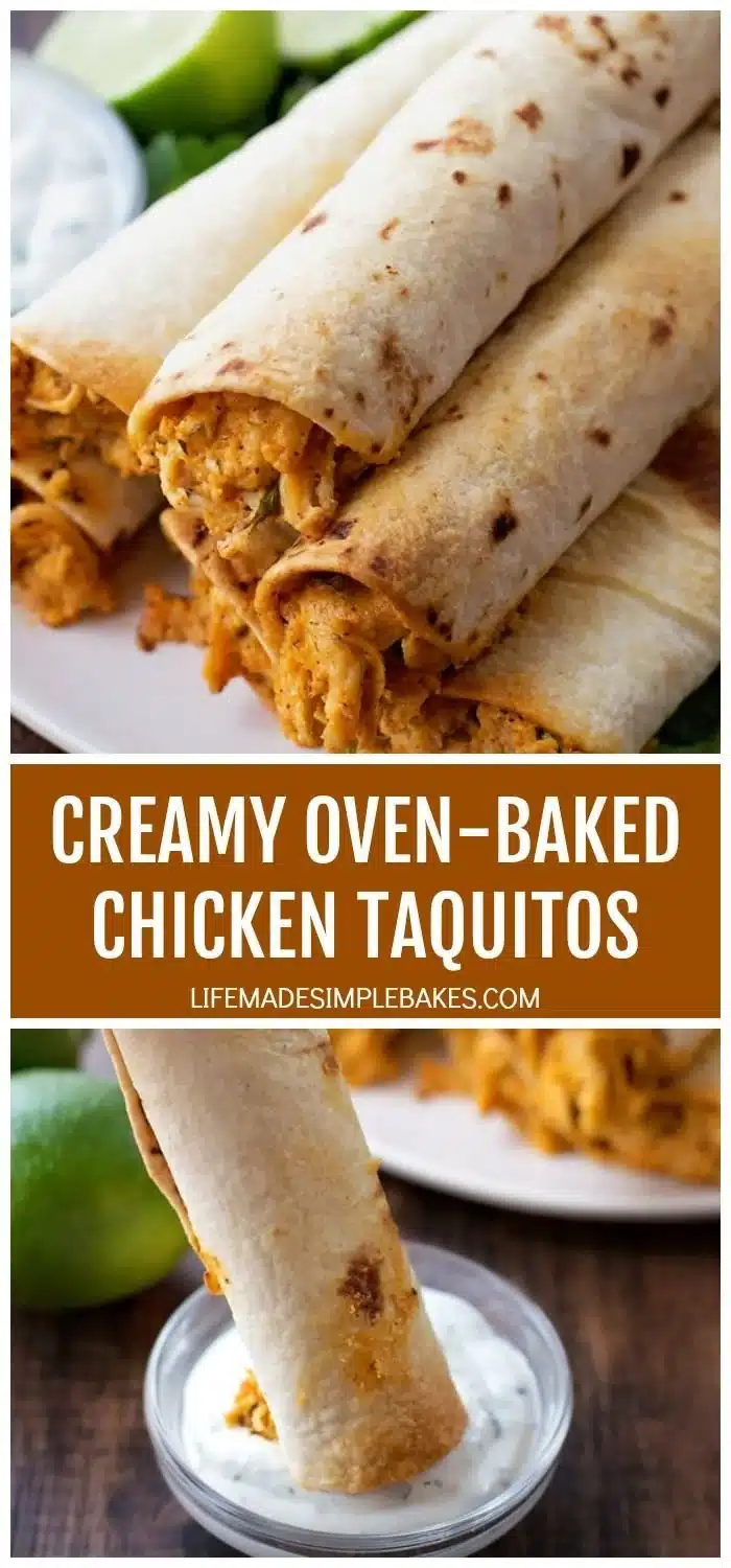Crispy Oven Baked Chicken Taquitos filled with savory chicken and cheese, perfect for dinner, parties, or snacks.