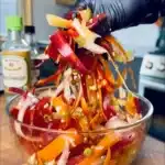 Raw carrot ribbon salad is a fresh and colorful dish that is easy to prepare. It’s a great way to enjoy the natural sweetness and crunchiness of carrots. This salad is not only tasty but also healthy, making it a perfect addition to any meal or as a light snack. Additionally, the vibrant colors of rainbow carrots make this dish visually appealing, which can impress your guests or family.
