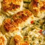Serve warm, pairs well with fresh fruit or a simple green salad. Drizzle some honey over the biscuit topping for extra sweetness. Don't skip the sautéing step; it enhances the flavor of the vegetables. For a spicier dish, add jalapeños or hot sauce. Experiment with different cheeses to find your favorite flavor combination.