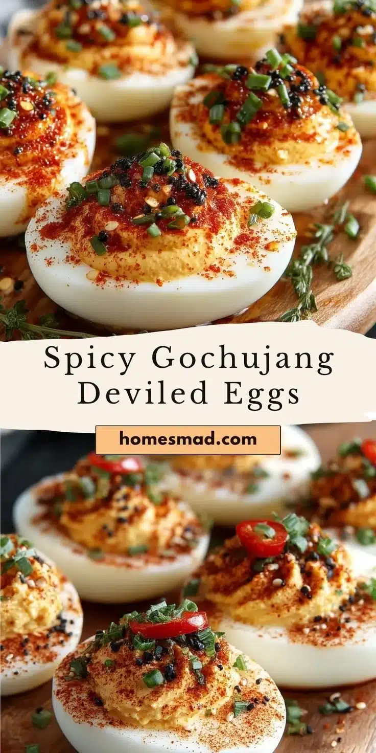 Deviled eggs are a classic dish loved by many. This recipe puts a fun twist on the traditional version by adding Gochujang sauce, which brings a unique flavor with a hint of spice. They are perfect for parties, picnics, or just a tasty snack at home. Plus, they are easy to make and always a crowd-pleaser.