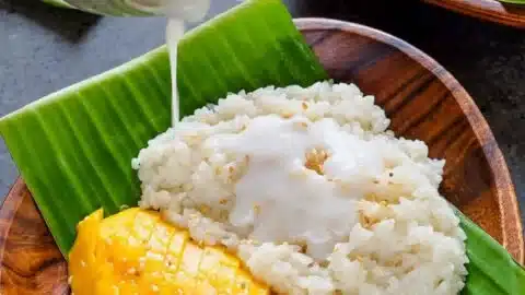 - Assembling them: On a plate, place a generous portion of the sticky rice. Slice the ripe mangoes and arrange them next to the rice. Drizzle some of the remaining coconut sauce over everything.